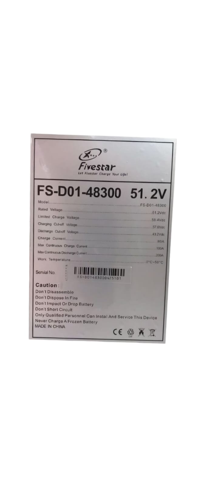 Fivestar D01 48v 300ah Lithium Ion Battery.